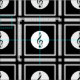 Stylish modern treble clef musical note in a black circle enclosed with stylish check pattern