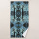 Here is a gorgeous bath towel design featuring an abstract interpretation of the view from the bottom of a very tall tulip tree looking way up to the top. The blue twilight sky creates an interesting lacy geometric abstract pattern of black silhouetted trunk and branches.