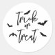 Black Trick Or Treat Text With Bats Halloween Classic Round Sticker