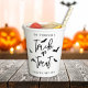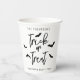 Serve your guests in spooky style with these festive Halloween paper cups. The design features Trick or Treat in sleek black script typography with playful bat silhouettes on a white background. Personalizable text areas above and below the design allow you to add a family name, party title or year, such as Halloween Party 20YY. A modern and minimalist choice, perfect for seasonal gatherings, trick-or-treat events and Halloween celebrations.