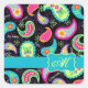 Black Turquoise Modern Paisley Pattern Monogram Square Sticker