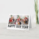 Happy New Year! Customizable Happy New Year photo collage card featuring black simple typography and snow pattern. Personalize by adding three photos, names, year and other details. This modern New Year card is available in other colours and cardstock.