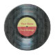 A glass cutting board with a music theme. It looks like a vinyl or phonograph record from the era of the record player. The disc's surface is black with light reflected off the spiral groove and a centre label in yellow and red surrounding the hole about which the record would rotate. Personalize with your name or your text or message above and below on the label area. Please note that this is a printed image and does not have a hole in the centre.