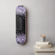 A black background. Personalize and add your name. Decorated with violet, lavender coloured faux glitter dust. The name is written with a modern hand lettered style script.