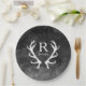Black Watercolor and Rustic Deer Antlers Monogram Paper Plate