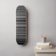 An abstract design made up of black wavy vector lines with a transparent background which allows the wood of the deck to show through.