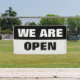 Let the World Know Your Business is Now Open! Capture attention with our impactful 'We Are Open' banner sign. Tailor a unique message using customizable text. Adjust colours in the design to align with your brand's identity.