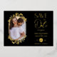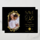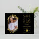 Black Wedding Fancy Ornament Frame Flowers Photo Metallic Foil Save the Date Card with Envelope.