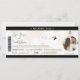 This invitation design includes a black and white destination wedding invitation, boarding pass wedding ticket, a portrait of the engaged couple, a plane with a loop trail, and is easily customisable. Remember to update the text on the back of the monogram.