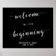 Calligraphy black wedding reception sign print Welcome to our beginning with customizable text - you can add bride's and groom's name and wedding date. Dimensions of the sign print (landscape poster) are 20 inches by 16 inches.