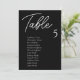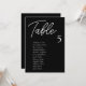 Modern Black Wedding Table Seating Chart Cards are the perfect finishing touch for your wedding reception. Guide your guests to their seats with this unique seating chart. The cards are perfect for hanging or displaying on a board or wall. The design features a minimal script font with elegant san serif in white on a black background. The design is printed on both sides.