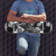 Here's a crisp Black and White Skateboard Design. If you want to put a piece of cool art on your board, this is the design for you or your friends and family who are interested in tricking out their skateboards. Gift it to your buddies or treat yourself to this awesome keeper. Enjoy!