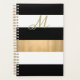 Stylish black, gold tone and white coloured daily / monthly planner done in a bold striped pattern. Personalize the one letter monogram to suit your needs.