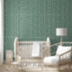 Classic vertical stripes in black, white, and green are featured on this wallpaper. Always in style, perfect for any decor, from urban to country.
