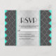 RSVP card featuring an elegant black, neon teal, and white, lace and funky, cool patterned design. Very classic and sophisticated design for any event. All photo print.