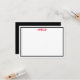 Black and white flat note card is black on the back and crisp sharp white on the front. The front features a bold black border and is personalized with a contemporary red font. Sleek and professional, this is a modern twist on a traditional note.