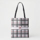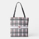 A classic and cozy plaid pattern gets a stylish twist by combining a classic combination of a white background with black and grey bars with a rich red accent. Customize the monogram with your own initial to make a unique accessory. This bag is available in multiple sizes and both tote bag and cross body bag styles.