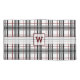A classic and cozy plaid pattern gets a stylish twist by combining a classic combination of a white background with black and grey bars with a rich red accent. Customize the initial on this pillow case to create some personalized linens for your home.