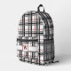 Black White and Red Plaid Printed Backpack