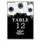 Elegant black and white anemone flowers and leaves watercolor on a black background highlight the top of these Table Number Cards. Personalize with your information that prints on the front and back (double-sided). NOTE: Create and add each table number card that you want to order to your cart individually. Change the black colour background to any colour to match your wedding theme. COORDINATING wedding or event invitations and other items available in our store to complete your invitation suite ---> http://bit.ly/2WEA0w5 <---