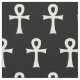 This fabric has an ankh cross symbol pattern, with white ankhs on a black background. The ankh is the ancient Egyptian symbol of life. The pattern and the black background can be edited if you prefer, using the Customize option.