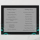 Noir et blanc avec Aqua Reverse Swirl Wedding Programme. Plier ce flyer recto-verso en deux pour un programme de mariage ou un menu élégant. Cet article est disponible en tant que collection complète d'affaires et de mariages incluant cartes de visite, papeterie, invitations, cartes RSVP, Save Dates, Magnets, Stickers, cartes de place de table, Planification Mariage et Album photo Classeurs et plus!