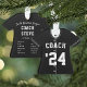 Commemorate an awesome season for your kids' baseball coach with this cool custom ornament in a black and white colorway. Personalize the front with the year, with "Coach" above, and add more details to the back, including coach name, team or league name, season, and the team roster.