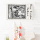 This cloth banner is white with a black and white drawing of little red riding hood holding her basket talking to the wolf in the woods in a fancy black frame. Customize the Happy Birthday text and name with the template.