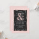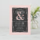 This elegant and modern minimalist wedding invitation is perfect for the classy event. It features a white and rose pink titled geometric border on top of a blush pink-framed black background. It's simple, chic, and trendy.