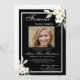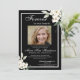 This invitation features an elegant white flowers greenery and frame on a black background with the departed loved one's photo in the centre. Just personalize the invitation and replace the photo of your loved one and information regarding the funeral/memorial service. You can customize the invitation to any way you would like to remember and honour the memory of your loved one. Please note: "Forever in our hearts", the watercolor white flowers greenery with frame and other graphic elements and artwork cannot be edited, changed, deleted, or moved. They are fixed.