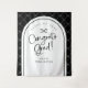 Create an elegant and trendy photo backdrop for your graduation party. Design features "Congrats Grad" in a modern handwritten script and a black arch atop a background of a geometric bow pattern. Personalize the template to customize with a class year and graduate's name. Shown in a classic black and white palette, though all colours are editable. © Kimbellished, LLC