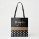 Black White Brown Monogram Script Polka Dots Tote Bag