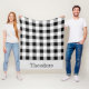 Personalized holiday fleece blanket with a classic black and white buffalo check plaid pattern. Customize it with your name or other custom text. Use the design tools to choose any background colour, edit the text fonts and colours, or add your own photos to create a one of a kind Christmas throw blanket. A special and unique personalized gift!