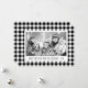 This rustic Christmas card features a background pattern of black and white buffalo check plaid. Customize it with your family's photo and a message in whimsical hand-printing style font.