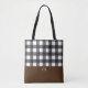 This modern black and white buffalo plaid tote is the perfect way to carry all your items in style. This design features a black and white checked design and a chocolate brown colour black on the lower portion of the bag. The monogram is a classic style. You can change the font style of the monogram, remove it completely, or switch it out for your single initial or your name.
