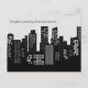 Our company has moved to a new location. Modern, custom city skyline at night drawing in black and white on customized moving announcement postcards for your business. Chic corporate relocation postcard for professional marketing to clients and customers. .