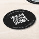 A stylish, classic black background. Personalize and add your business name, your own qr code and a text. White text.