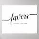 This elegant crisp black calligraphy "favors" sign is perfect for a simple wedding or bridal shower. The line of text at the bottom of the sign can be personalized with the date, the names of the bride and groom, or a short message like "Thank you". This sign can be used for a wedding or any event or party.