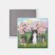 Black & White Cat - Blossoms Magnet