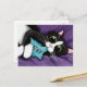 A black and white cat lies on a purple blanket while clutching a catnip pillow in this fun cat art postcard. Send to your friends or keep as part of your own collection. A postcard that cat and animal lovers will adore. Copyright © 2009 Lisa Marie Robinson. All Rights Reserved.