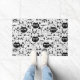 Cartoon like graphic, faces of black cats & white cats, seamless repeat pattern