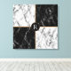Trendy Black & White Check Marble Canvas Print - Add Your Letter / Logo / Year / Number / More