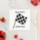 This paper cocktail party napkin is great for a race party or event. This napkin has a large black and white waving chequered flag with the customizable words "Race Party" above the flag. Easy to customize for your event. Personalize with a name below the flag or change either to other words. Its for a fun party or event for any type of race including an auto motor or motorcycle race fan or someone who has won a race, minor or big. A date can also be added for a special occasion or race. The flag art is on a white background. Fully customizable for your party, event or other occasion!