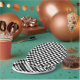 This fun partyware features a chequerboard pattern in bold contrasting black and white. With design reminiscent of the chequered winning flag in motor racing, the classic grid look is great for a lad's birthday party or other special occasion.