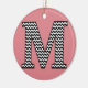 Black and White chevron Letter "M" Monogram Initial. Personalize your stuff with your initial in style. You just can't go wrong with a classic Chevron! This traditional zigzag pattern is taking the world by storm. It's Chevron madness! -- and since the Chevron has been around for literally hundreds of years before it became trendy this century. It's here to stay. Personalize this ornament with a personal message and date as well as customizing the background colour to match your favourite colour or Christmas decor.