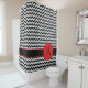 Make a fashion statement in your bath with this sophisticated black and white chevron zigzag design shower curtain with your monogram initial. You can easily customize the initial, which sits on a large red circle dot or change it to a word or name. The red dot sits on a black strip with red edges. The Chevron zig zag graphic design is one of the hottest art and design trends, and is extremely popular from fashion to home decor. Coordinate with a matching bath rug or toothbrush and lotion or soap dispensers in this store. Great for a stylish and trendy masculine or feminine bath.