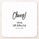 Add detail to your special day with this stylish 80th birthday party paper coaster. This design features a chic brush script "Cheers!", "Your name's 80th Birthday Party" in black and white. You can customize the text to any age or event. More designs available at my shop BaraBomDesign.