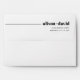 Embrace the elegance of chic and understated design with this minimalist wedding envelope. The clean white exterior showcases a sleek horizontal line on the back flap, adding a touch of modernity. By incorporating the names of the couple, the line appears to effortlessly extend towards the right side of the envelope, creating a visually captivating effect. Opening the envelope reveals a striking interior in a solid black hue, exuding sophistication and setting the tone for a stylish celebration.