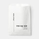 This wedding favour bag is designed with a chic and simple typography minimalist style. The combination of black and white colours creates a sleek and elegant look. The design features a vertical line on the left side, which gives it a modern touch. By incorporating the couple's names, the design appears to extend towards the upper part of the bag, adding a personalized touch. The phrase "THANK YOU" is prominently displayed in bold typography, expressing gratitude to the guests. Overall, this bag is a stylish and minimalistic choice for a wedding favour.