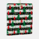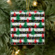 Black White Christmas Snow Stripes Red Green Trees Ceramic Ornament
